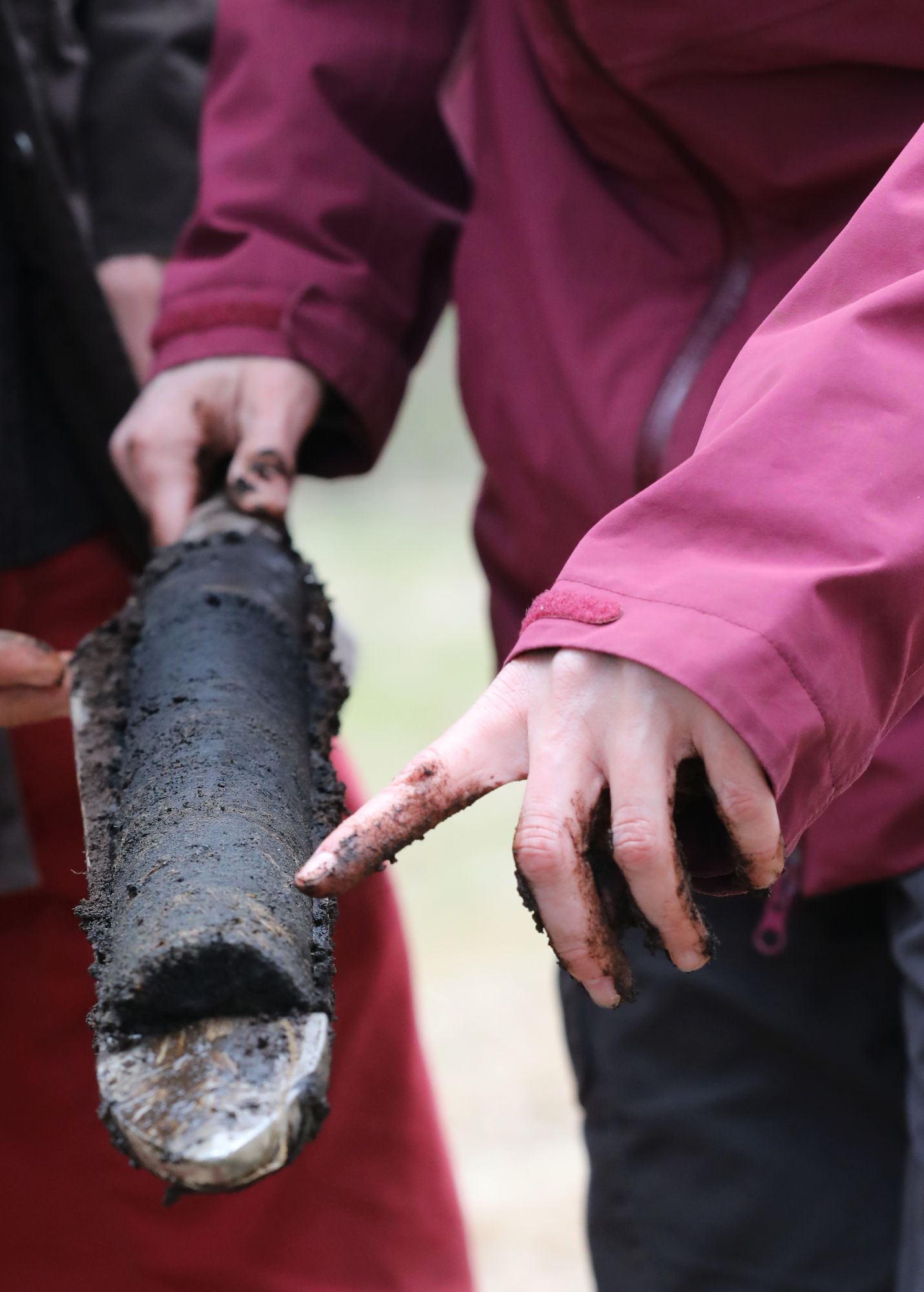 Die Moorforscherin Franziska Tanneberger bei der Probenentnahme: TK