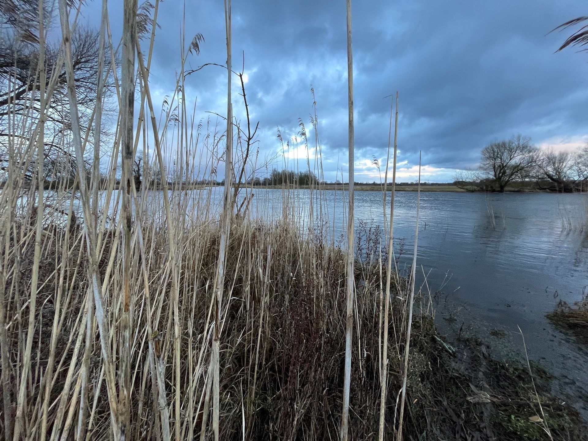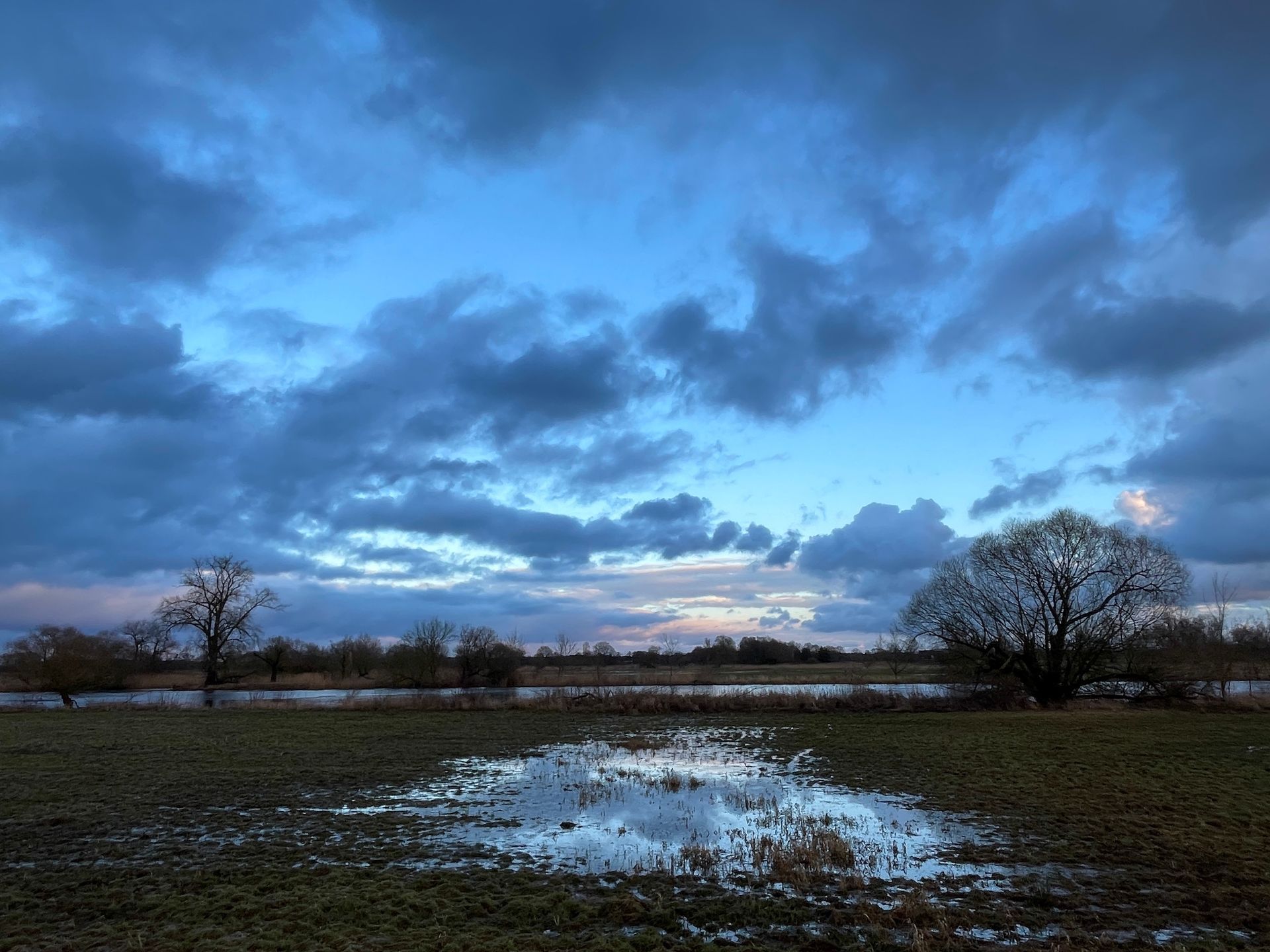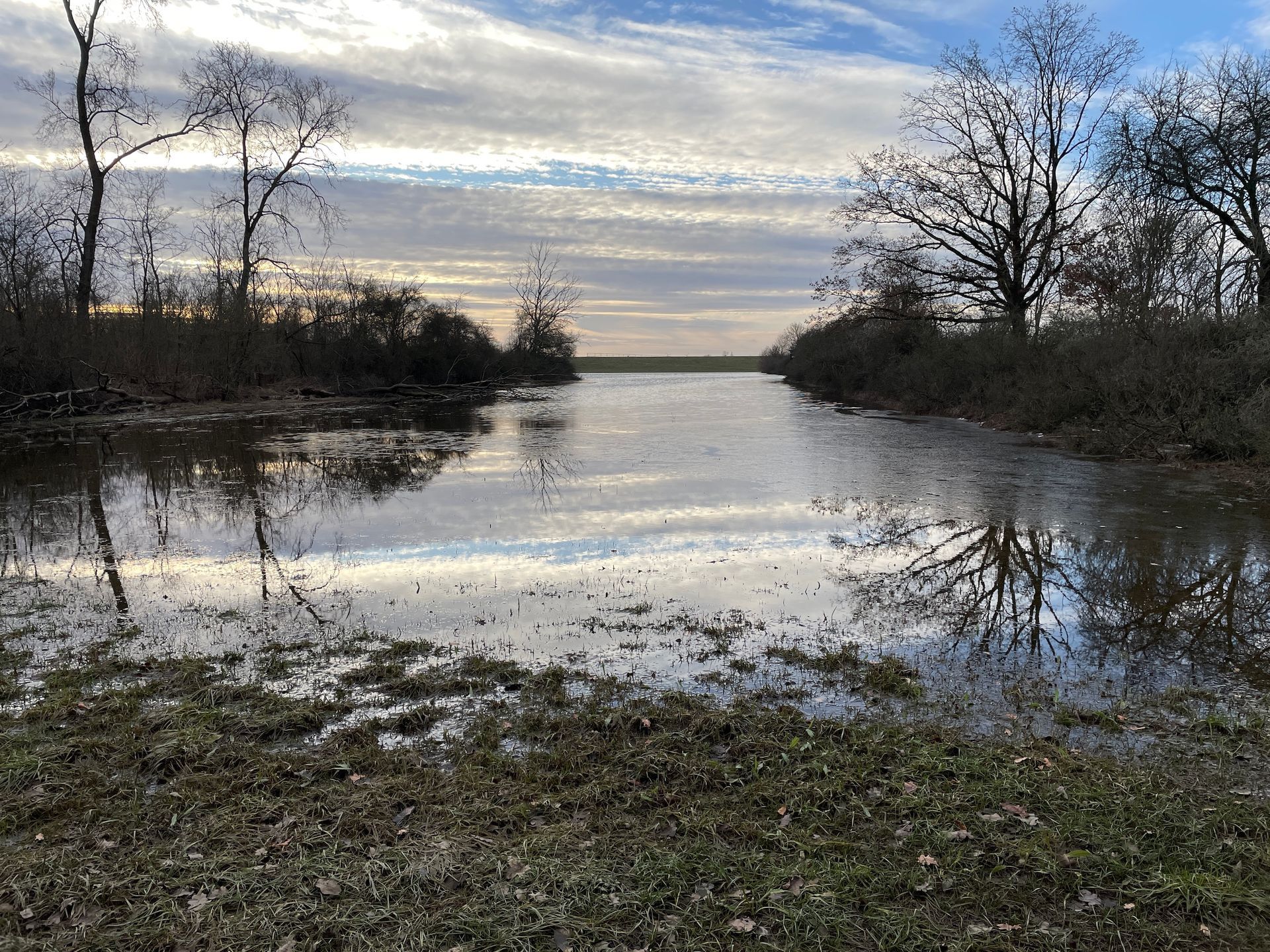 Überschwemmte Randfläche des Auswalds Lödderitzer Forst mit Deich: CS