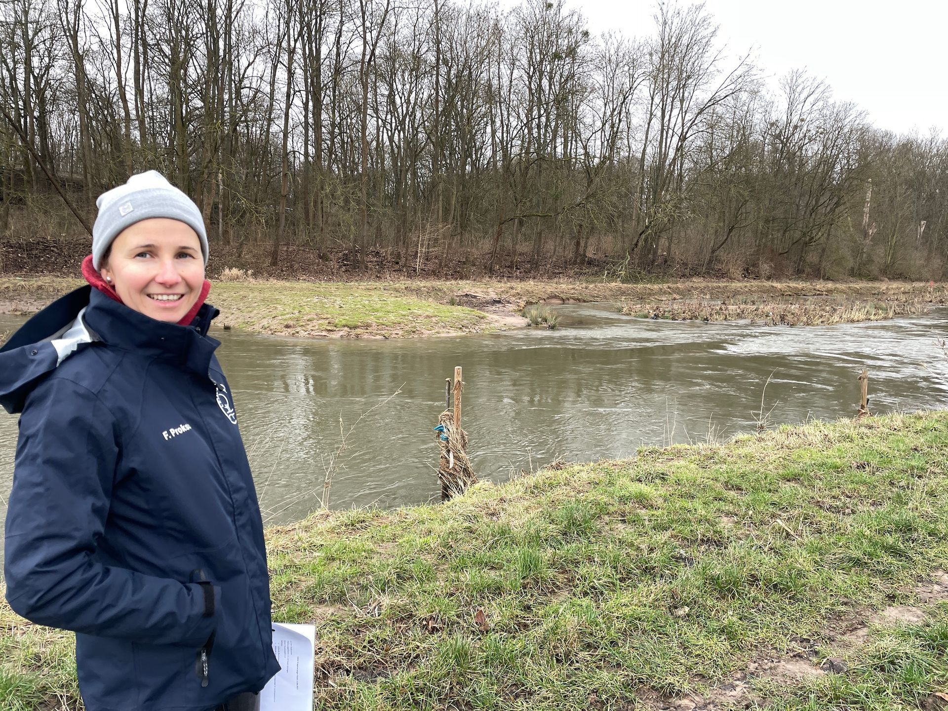 Die Umweltingenieurin Friderike Proksch vom Leineverband an renatiertem Flussabschnitt: CS